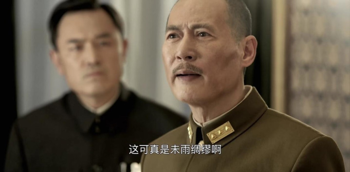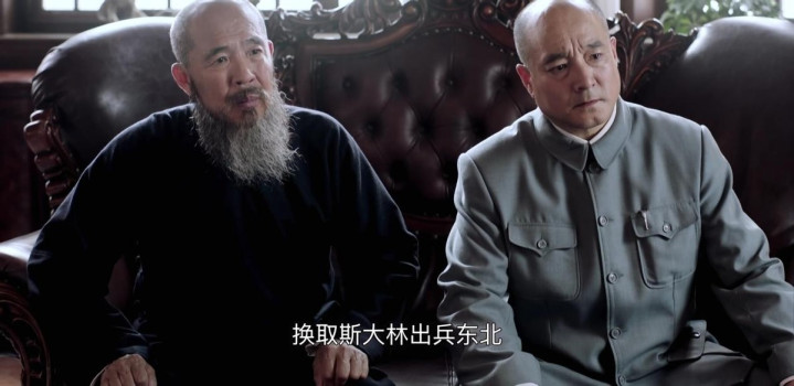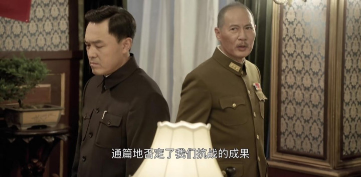 另一场戏,主席表明自己的态度立场,语气铿锵有力,不管是台词还是他紧皱的眉头,都在强调一件事,抗战胜利后,中国未来的命运走向至关重要。